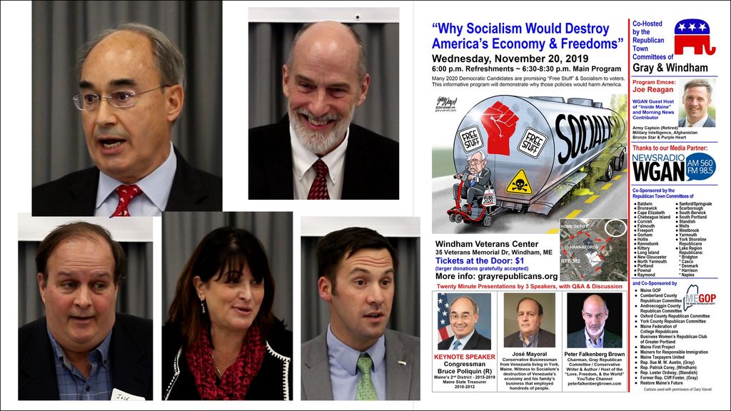 Videos: “Why Socialism Would Destroy America’s Economy & Freedoms”Fifty-two Republican and conservative groups and leaders hosted a public event on the topic “Why Socialism Would Destroy America’s Economy & Freedoms” at the Windham Veterans Center, Windham, Maine, on Wednesday, November 20, 2019, from 6:30 to 8:30 p.m.